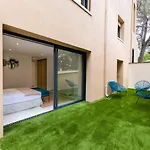 Das Appart Hotel 2 Chambres - Cuisine - Parking bietet eine Terrasse, einen Ankleidebereich und eine Sitzecke mit einer Klimaanlage für höchsten Komfort. Hier gibt es zudem 2 Badezimmer. Sie können sich auch eine Badewanne und eine Dusche genießen.
